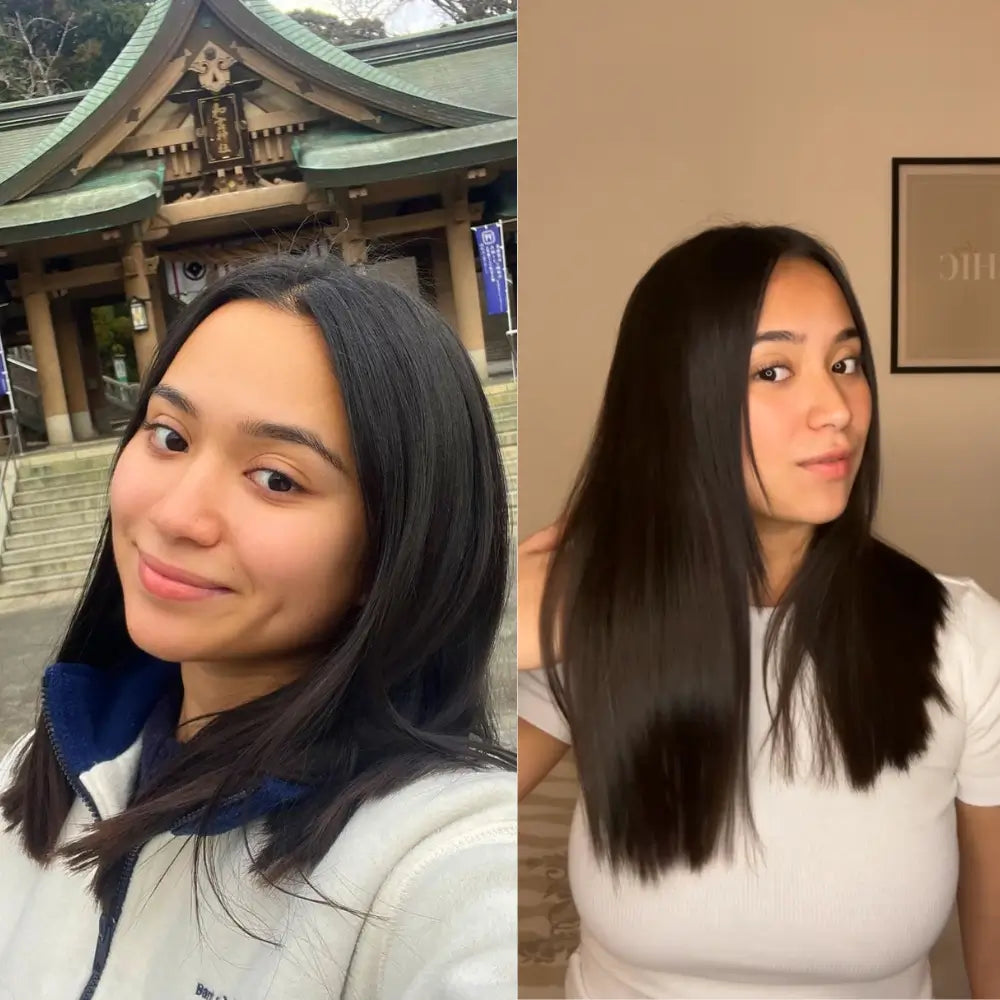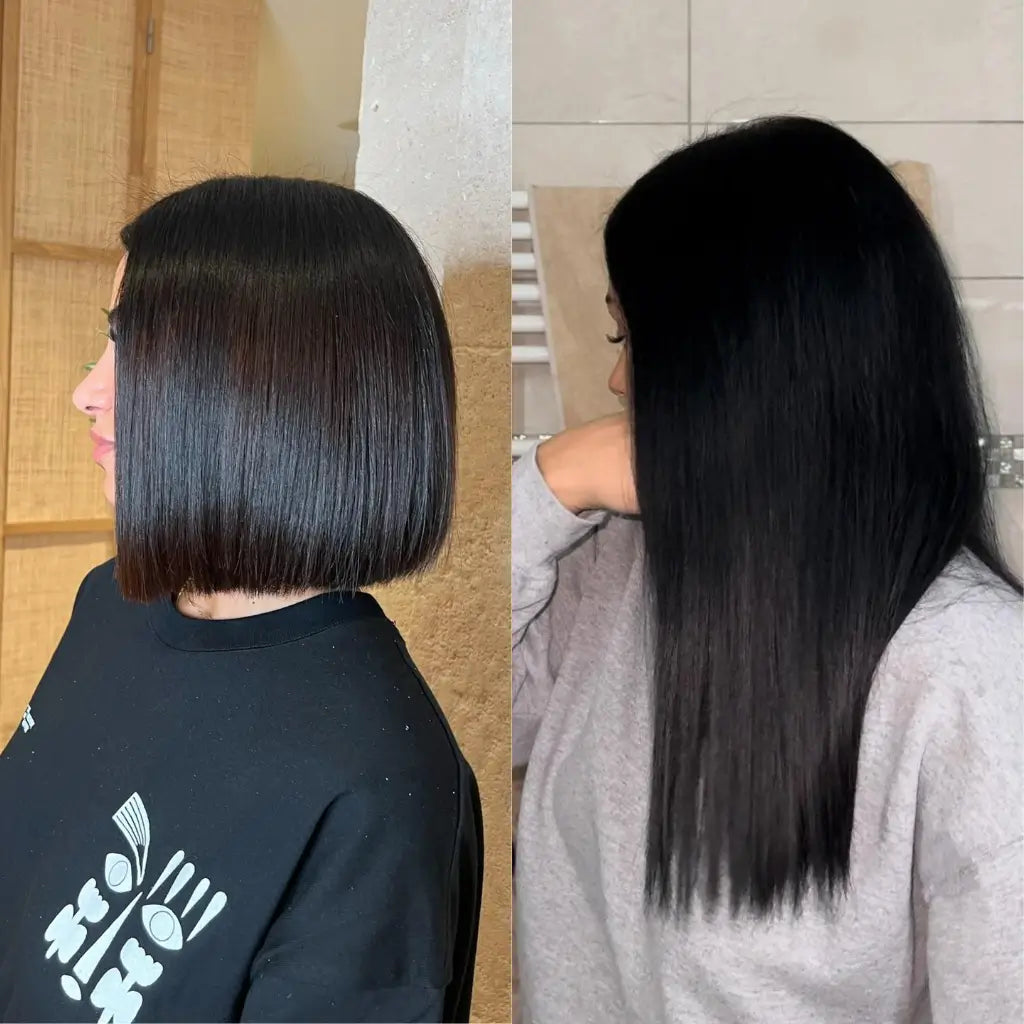 "J'ai très vite regretté mon carré, je souhaitais à tout prix regagner de la longueur le plus vite possible. Heureusement, j'ai découvert ce kit qui m'a permis une pousse incroyable"